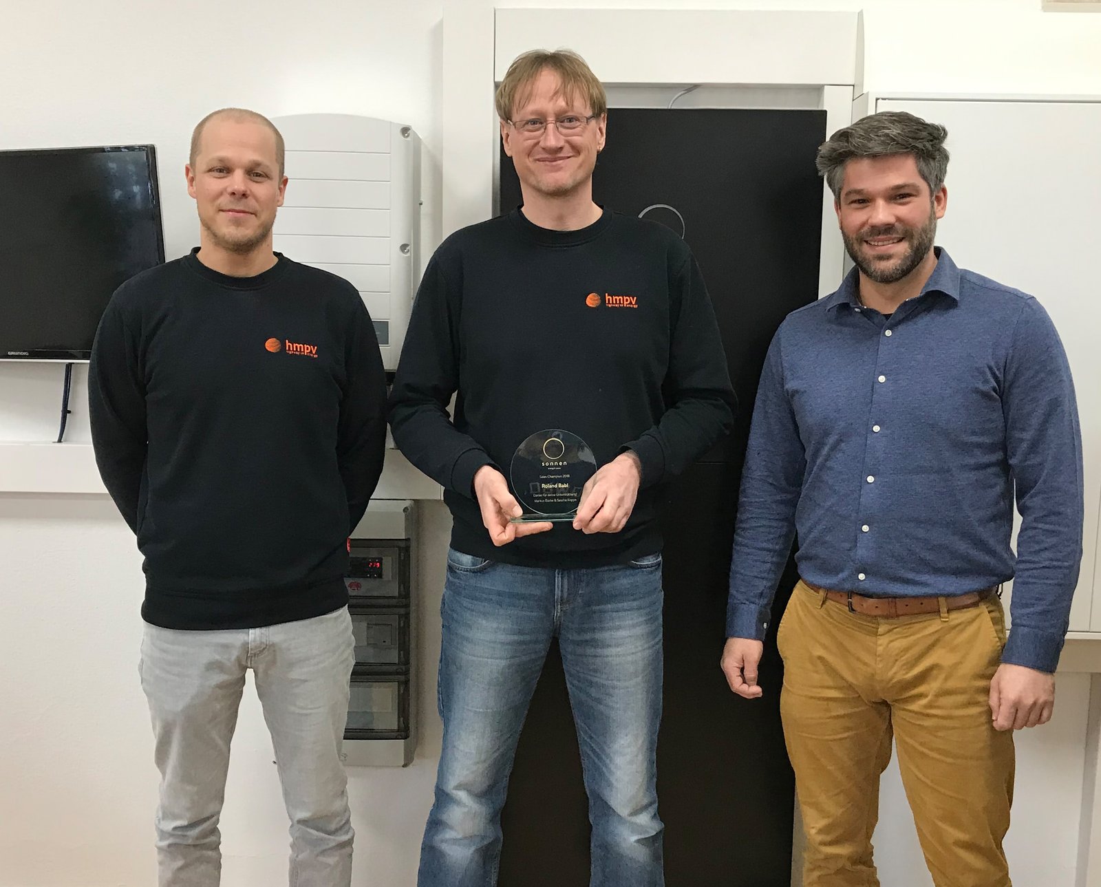 Unser langjähriger Mitarbeiter Roland, der bereits seit über 10 Jahren im Vertrieb und der Projektabwicklung tätig ist, ist seitens sonnen (Weltmarktführer für Heimspeicher) als einer der besten Vertriebsmitarbeiter Deutschlands ausgezeichnet worden!